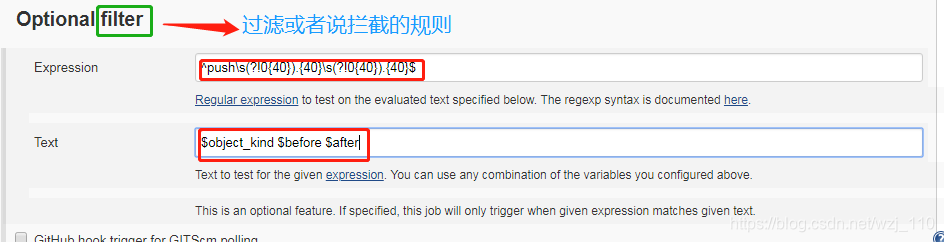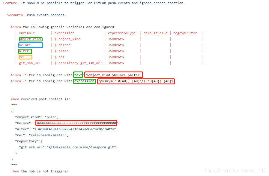 '现在需求':过滤特殊的push请求'原因':新建一个分支,是一个push操作,但是会触发jenkins流水线的运行'缺点':如果触发流水线运行,会'浪费资源',所以我们希望把诸如此类的push请求过滤